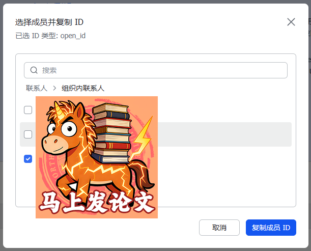 然后下面就可以复制企业成员的open_id了: