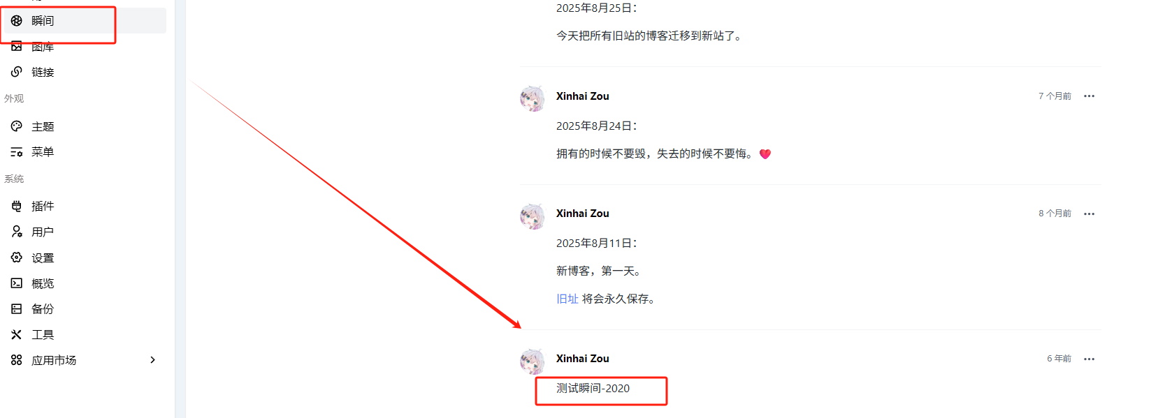 所以我之前花了很长一段时间把文章全部搬运了过来。但是现在又有一个问题,就是文章的时间其实无所谓,但是心情/瞬间的时间是需要精确的,因为这个代表了当时我的心情是如何如何的,但是文章这件事情,其实说实话,时间没有那么有所谓。