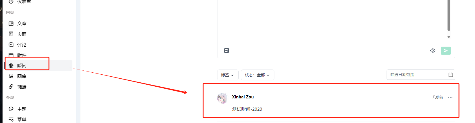 正常发布一条瞬间