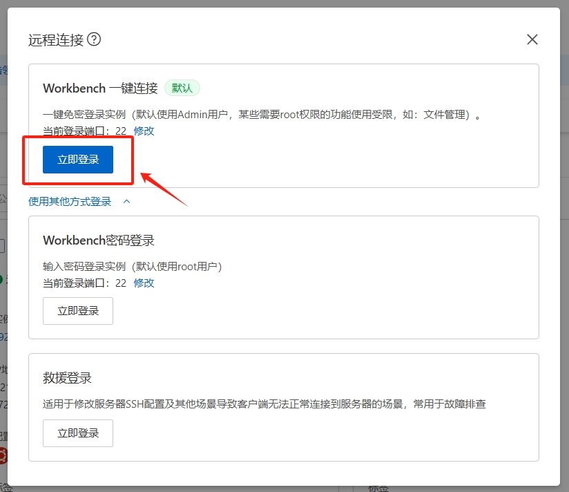 然后可以开始架设我们的服务器了,我们直接远程连接