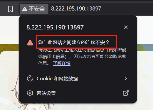域名是很重要的东西,首先就是方便别人查找和登录,因为IP地址太难记住了,但是更重要的就是,域名可以提供HTTPS,我们现在很明显可以发现这里左上角,浏览器显示了一个“不安全”: