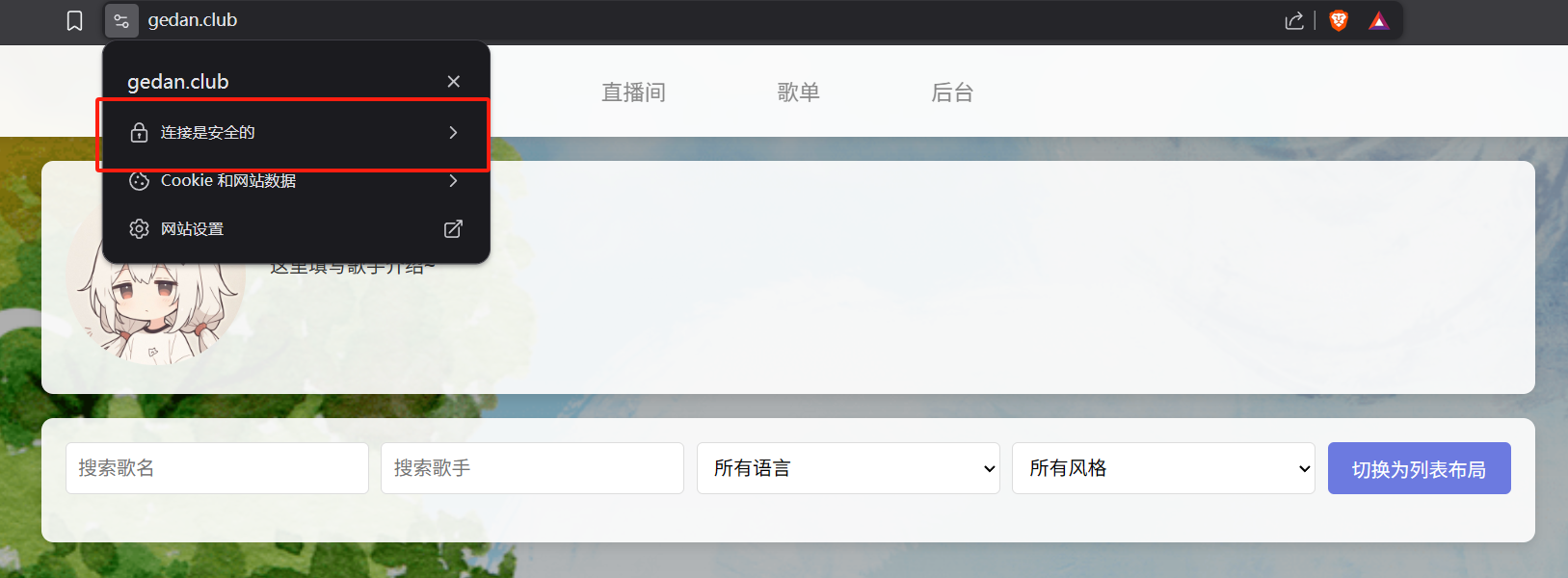 这是很久以前帮mer做的一个主播歌单,但是一直没有想过把它推广出去,昨天晚上refactor了一下,打算稍微推广一下。但是也就是refactor了,所以整个过程的假设很简单,唯一困难的估计就是HTTPS的过程了。