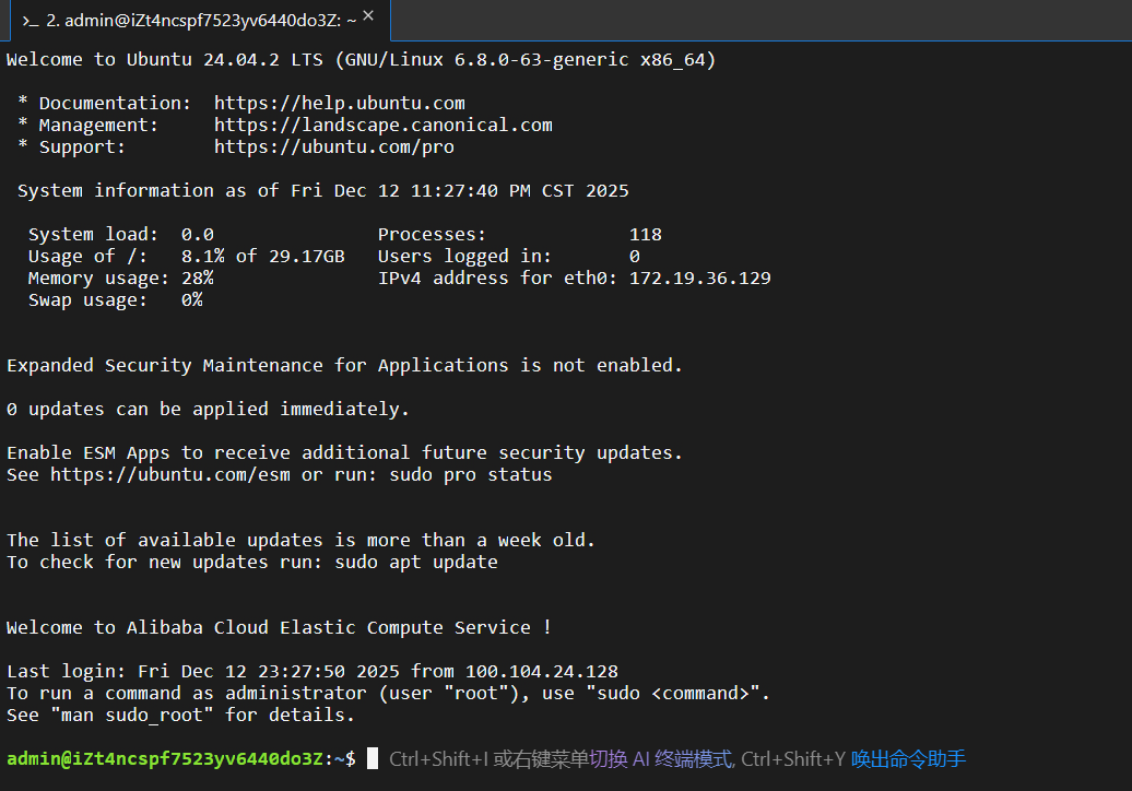 【重要!】我们先把root给退出来了,实际测试的时候,发现root命令运行docker compose up -d 会出现被服务器踢出来的情况,运行以下命令: